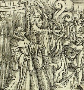 When Edward died, his successor hit the reset button on reform in the English Church, and she hit it hard with blood and burning. Mary Tudor, Henry’s first daughter and a staunch Roman Catholic, repealed the reforms made since 1534 and relentlessly sought to purge England of all Protestant influence. During her five-year reign, England once again affirmed obedience to the pope. As with most everything else in these tumultuous decades, religion and politics once again danced clumsily with one another. Mary’s allegiance to the pope was borne not just out of religious zeal, but also to secure Mary’s status as a legitimate heir to the throne. Mary burned several hundred people at the stake including our old friend, Thomas Cranmer.